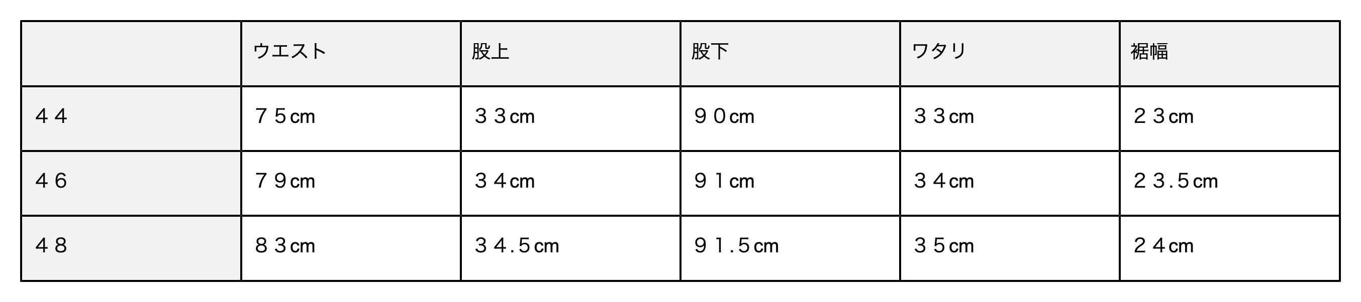 • サイズ展開:44, 46, 48(ブランドサイズ)