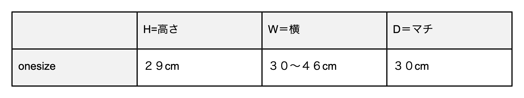 SIZE : (H=高さ)29cm / (W=横)30~46cm /(D=マチ)30cm