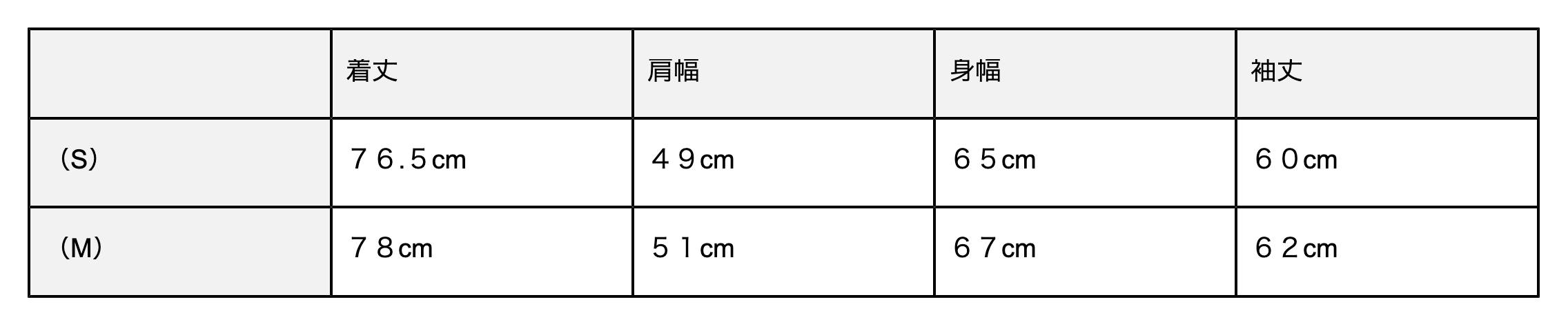 (S)⇨普段S〜Mサイズ程度を着る方